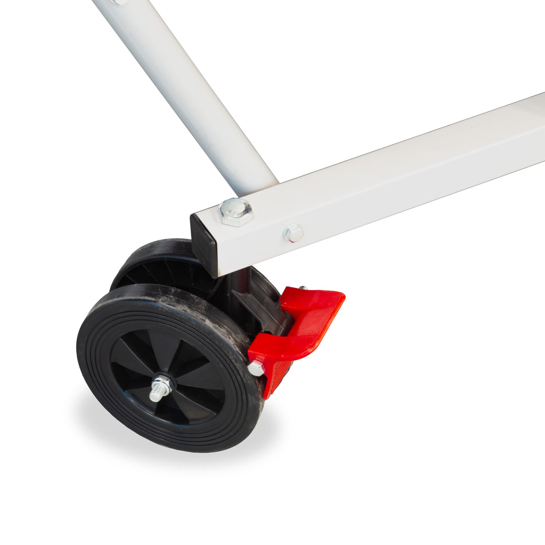 Оснащен четырьмя колесами, два из которых имеют систему блокировки, что обеспечивает удобство перемещения.