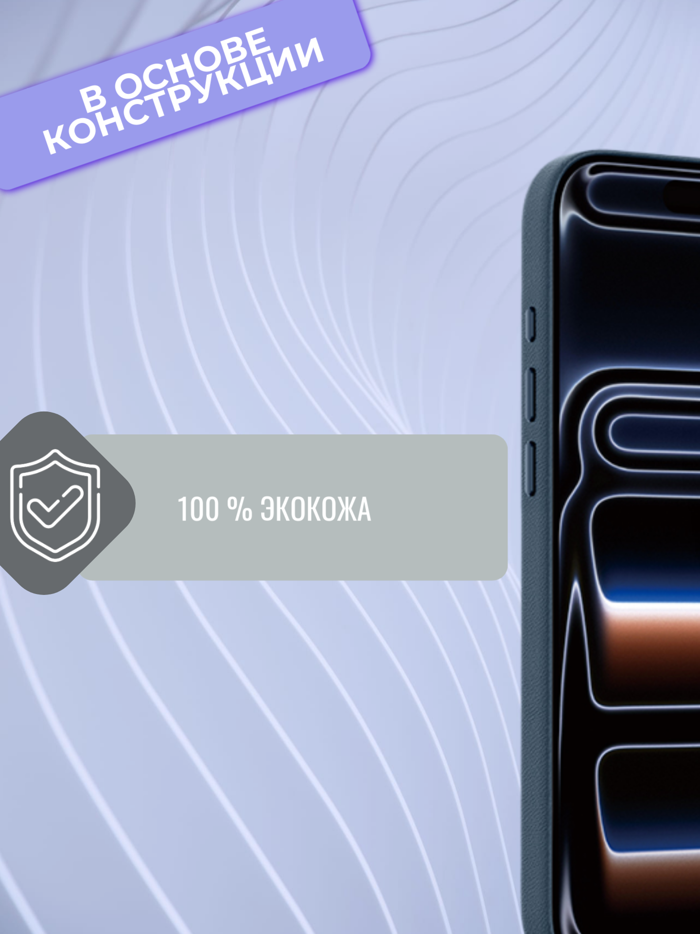 Внутренняя часть чехла отделана мягкой микрофиброй: она защищает корпус смартфона от микроцарапин и создаёт дополнительное ощущение комфорта при использовании. Внешняя экокожа отличается долговечностью, устойчивостью к повседневным воздействиям и сохраняет безупречный внешний вид надолго.