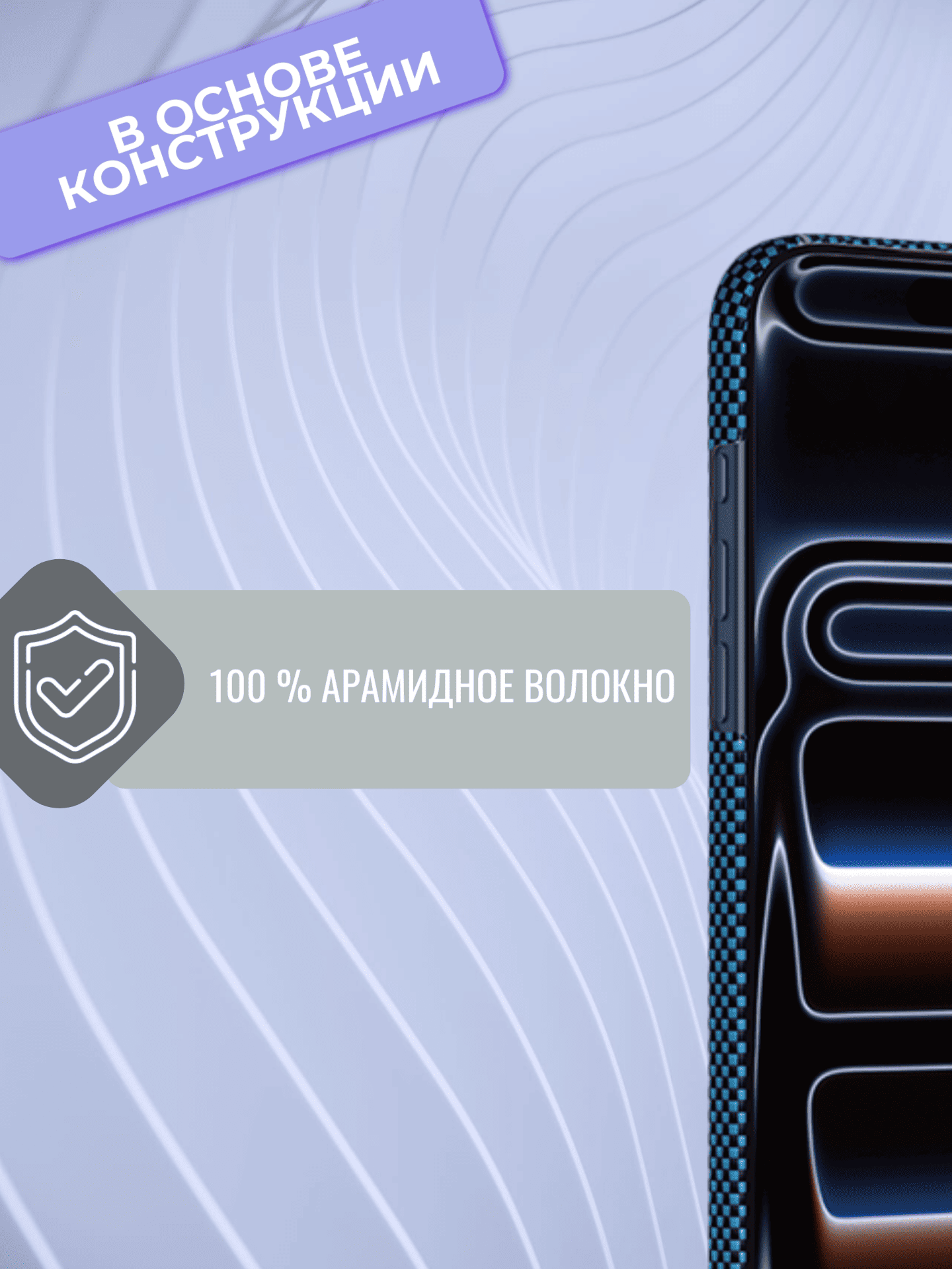 Уровень защиты соответствует военным стандартам: конструкция эффективно амортизирует удары и поглощает энергию при падениях, минимизируя риск повреждений корпуса и внутренних компонентов. Арамидное волокно берёт на себя основную нагрузку, сохраняя iPhone в целости даже в сложных условиях эксплуатации — будь то повседневная суета города или активный отдых.