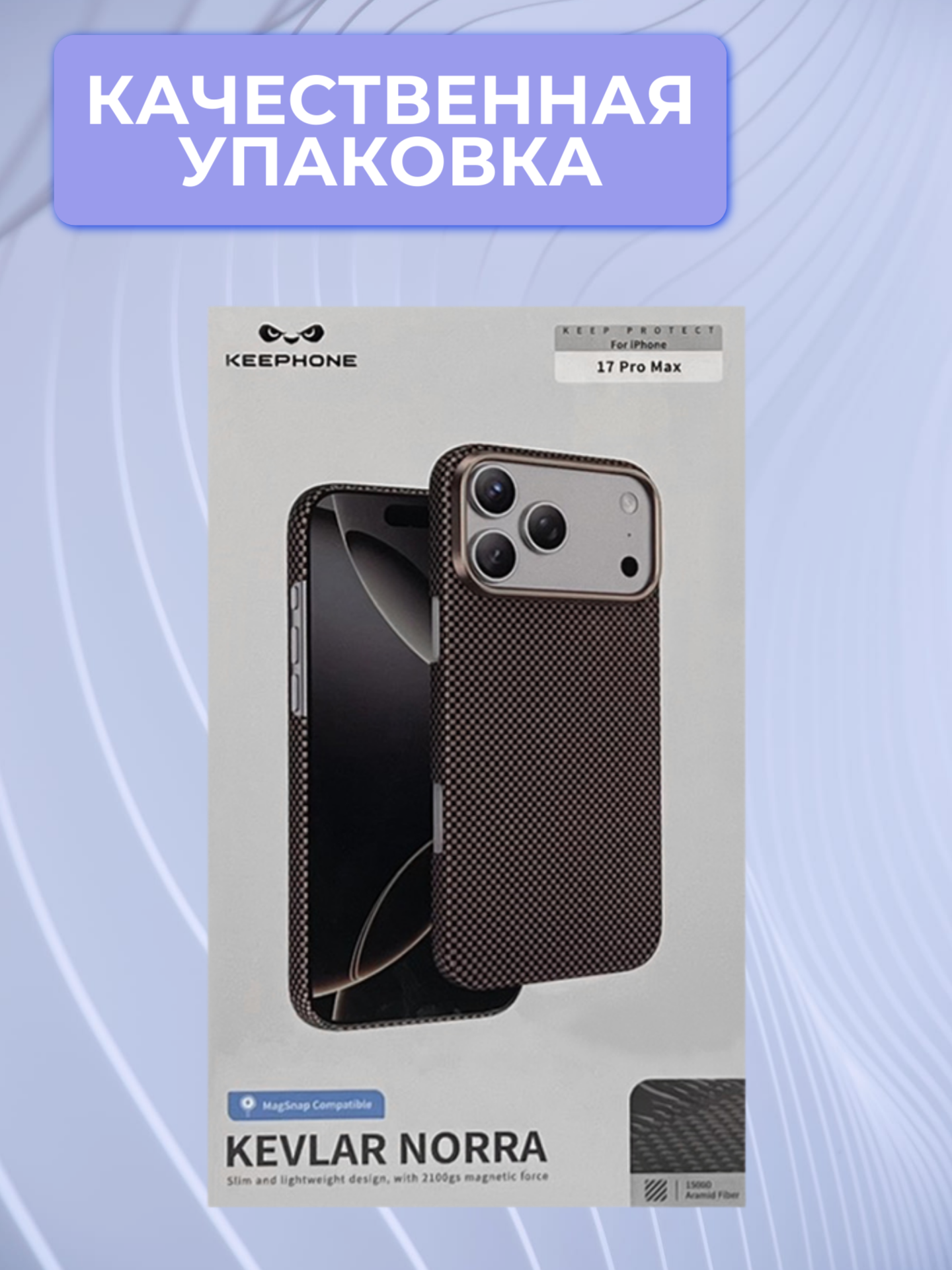 KEEPHONE KEVLAR NORRA объединяет передовые технологии, тактильный комфорт и надёжную защиту — прочный арамид, продуманная эргономика, безупречная интеграция с MagSafe и лаконичный стиль делают этот чехол практичным и стильным выбором для владельцев iPhone 17 Pro Max.