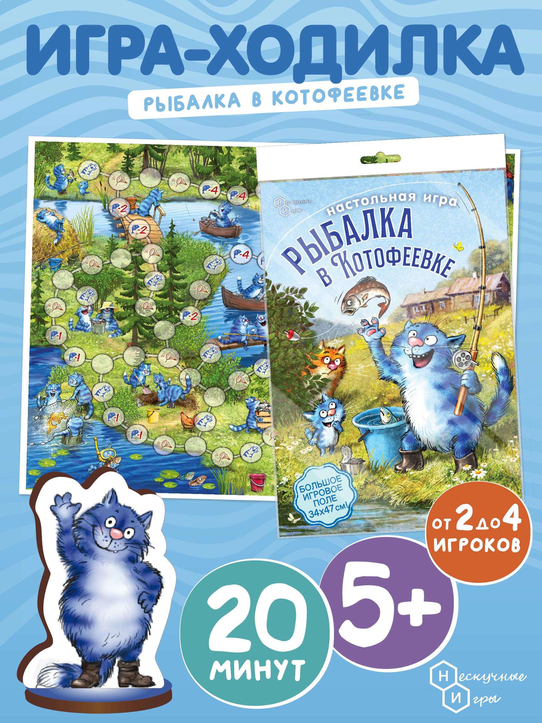 Увлекательная настольная игра для всей семьи! Проведите время вместе с жителями деревни Котофеевка и узнайте, кто сегодня более удачливый рыбак.