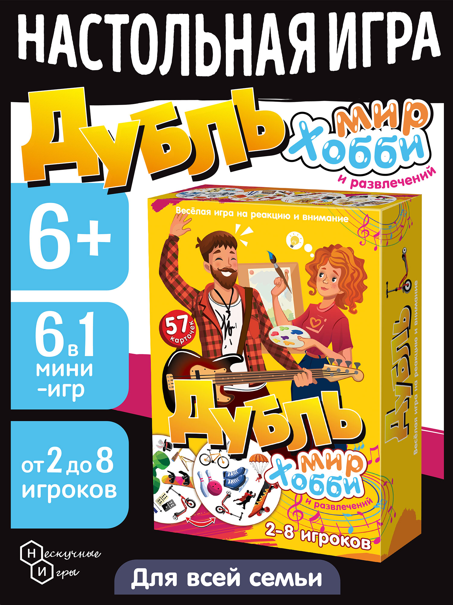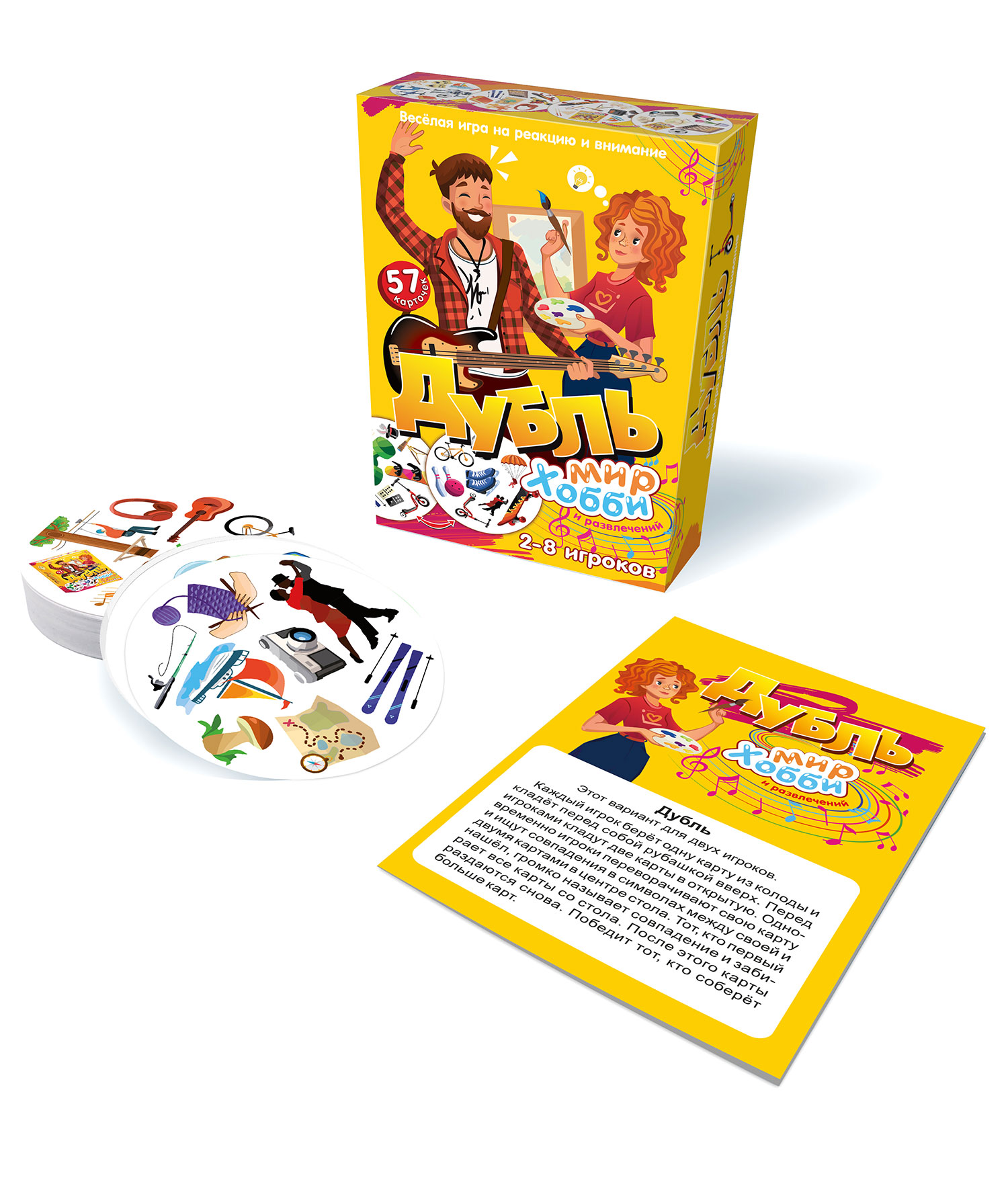 Настольная игра Дубль Мир хобби и развлечений - это увлекательная быстрая игра на реакцию и внимательность подойдет для детей и взрослых от 4 до 99 лет.