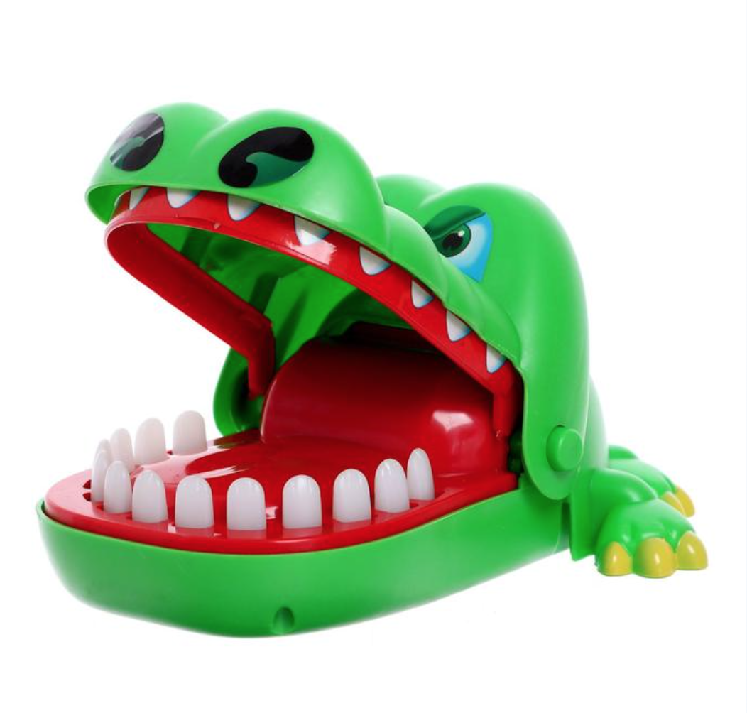 Суть игры заключается в поочередном нажатии на зубы крокодила. Но будьте осторожны — в одном из зубов скрывается механизм, который захлопнет пасть! Проигравший участник тянет весёлый фант и выполняет забавное задание, что делает игру ещё более увлекательной и непредсказуемой.