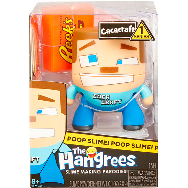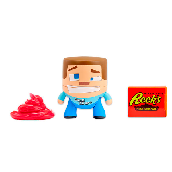 Головастая фигурка Cacacraft с коричневыми волосами, в голубом костюме. У персонажа прикольное выражение лица, большой открывающийся рот, подвижные руки и ноги, а в нижней части туловища есть отверстие, через которое выходит слайм. Обожает Peenut butter plols Reek’s. Высота фигурки 10 см.