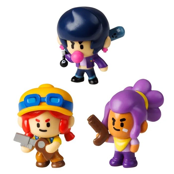 Набор из трех фигурок популярных героев игры Brawl Stars — Джесси, Биби и Шелли.