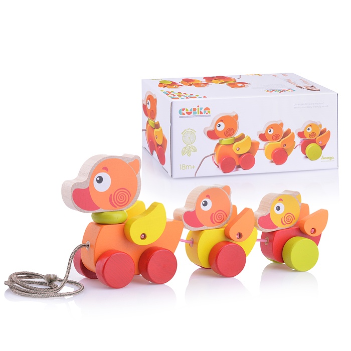 - Благодаря наличию колес у каждой утки, игрушку получится легко катать по ровной поверхности.
