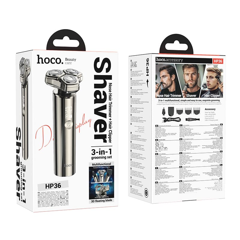Hoco HP36 — это инновационный триммер 3-в-1, объединяющий в себе все необходимые функции для полноценного ухода за внешностью. Стильный дизайн в серо-металлическом исполнении и современный дисплей делают этот прибор настоящим украшением вашей косметички.