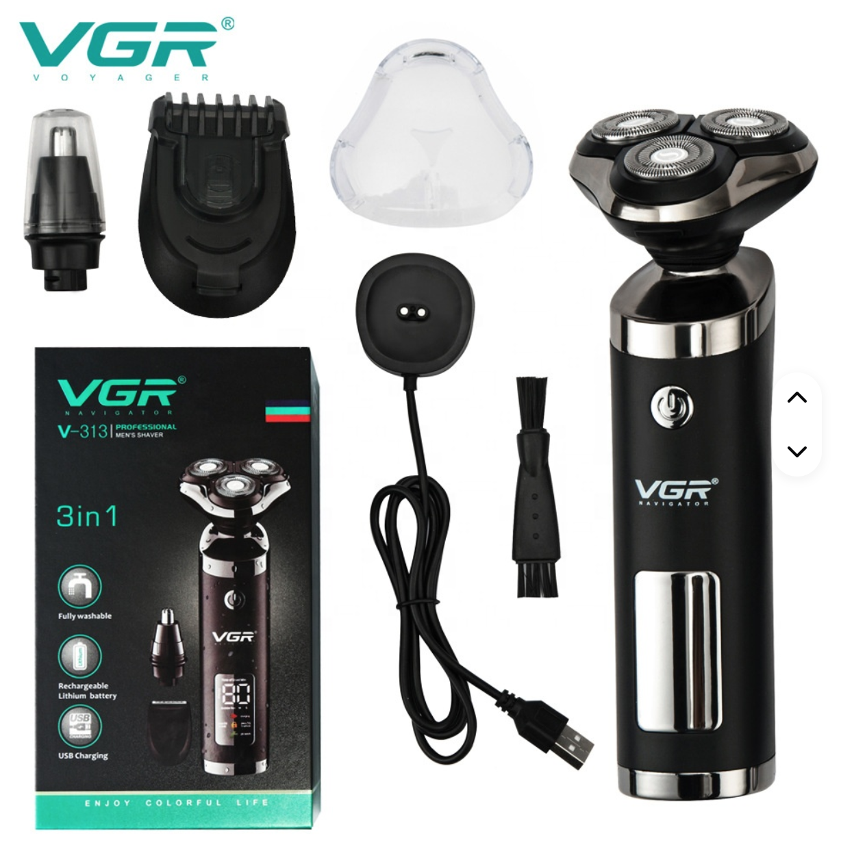 Электробритва VGR V-313 — это современное устройство для комфортного бритья, сочетающее в себе инновационные технологии и практичность использования. Благодаря трёхголовочной системе с плавающими головками, бритва идеально повторяет контуры лица, обеспечивая максимально гладкое и комфортное бритьё.