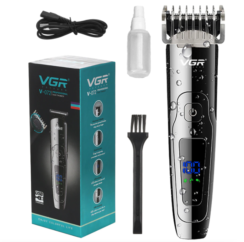 Машинка для стрижки волос VGR 072, профессиональная водонепроницаемая машинка для стрижки волос с ЖК-дисплеем, заряжаемая машинка для стрижки волос.
