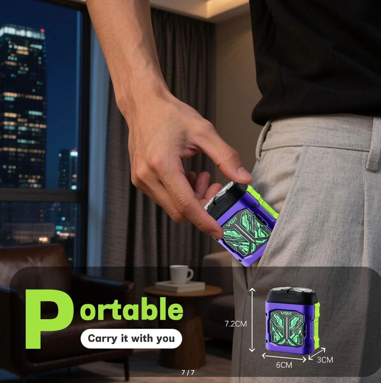 Компактная электрическая бритва VGR V-344 — это удобное решение для тех, кто ценит мобильность и качество бритья. Благодаря небольшим размерам и легкому весу в 200 грамм устройство легко помещается в кармане или дорожной сумке, становясь незаменимым помощником в поездках и командировках.