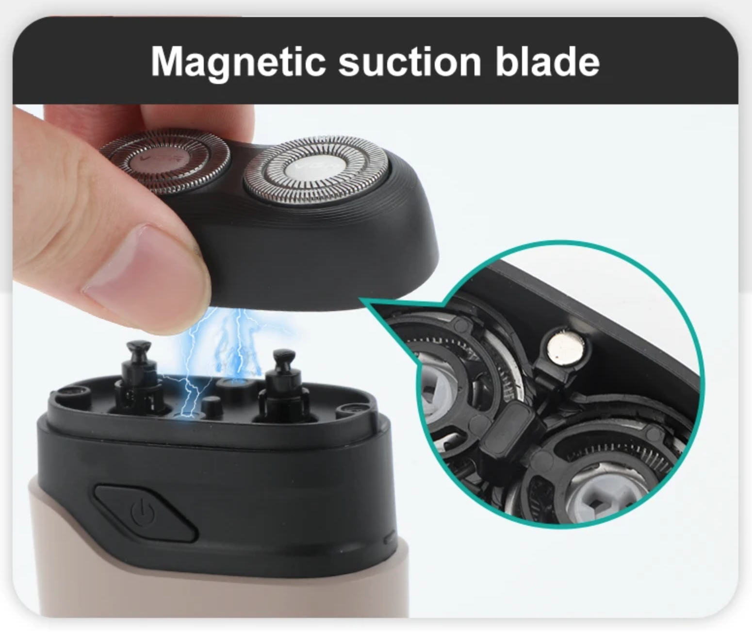 Бритва оснащена двумя вращающимися головками с ножами из нержавеющей стали, которые обеспечивают максимально эффективное удаление волос. Магнитное крепление головок позволяет легко снимать и очищать их после использования.