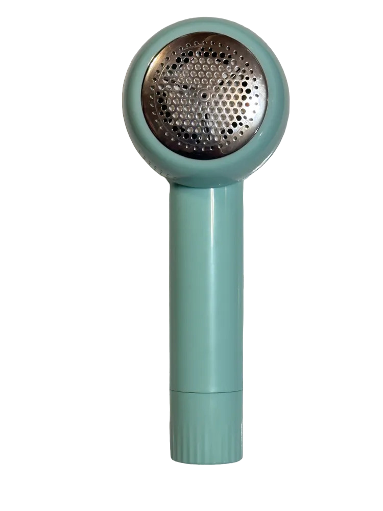 Корпус устройства был спроектирован в форме буквы “Т” в соответствии с принципами эргономики, поэтому его удобно держать, а нагрузка на запястье минимальна. Машинка изготовлена из качественного матового пластика нежного зеленого цвета, а вес составляет всего 175 грамм. Она имеет тихий ход, отсутствует вибрация при работе. Машинка для удаления катышков и чистки одежды не повреждает ткань, так как имеет защитную сетку.