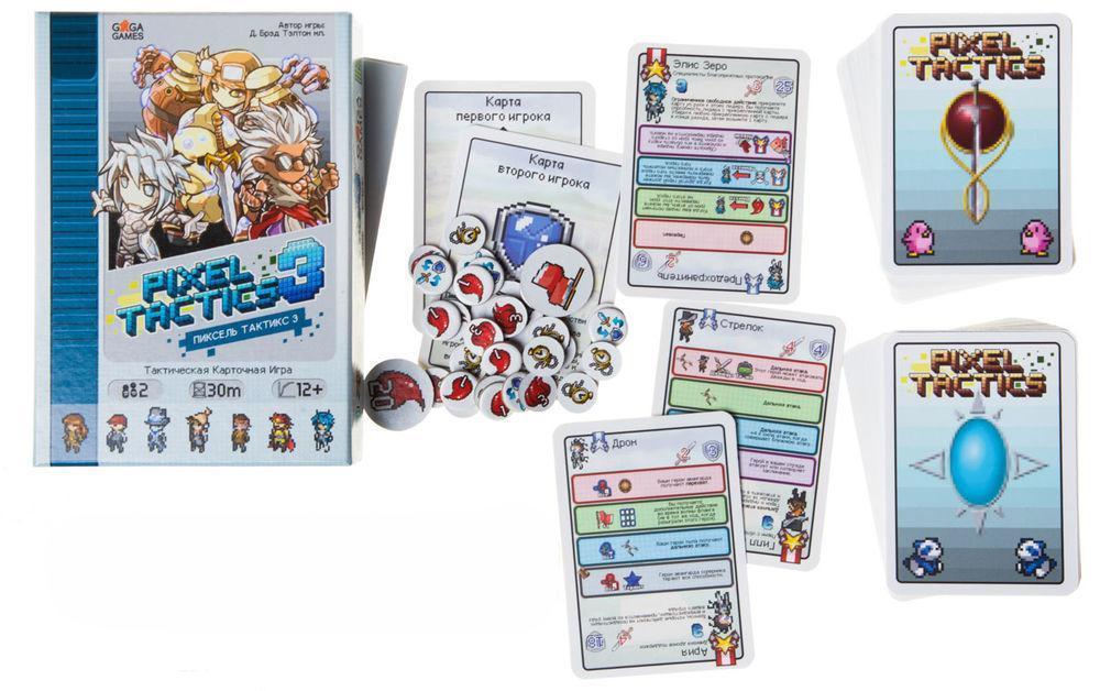 "Пиксель Тактикс 3" - это продолжение популярной тактической карточной игры "Пиксель Тактикс" и "Пиксель Тактикс 2", в которой два игрока выступают в качестве командиров небольших отрядов.