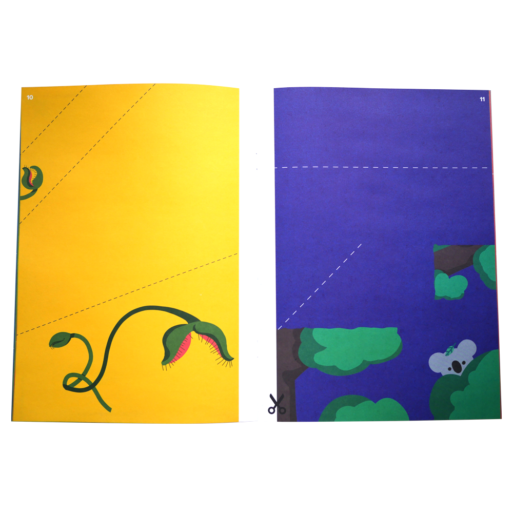 Части изображения расположены на разных сторонах листа, и ребёнку сначала не так просто предположить, где окажутся те или иные кусочки даже при простом перегибе листа. Задания постепенно усложняются, в самых продвинутых тетрадях даже взрослым не всегда удаётся сразу понять, каким образом нужно сложить лист, чтобы получилось изображение.