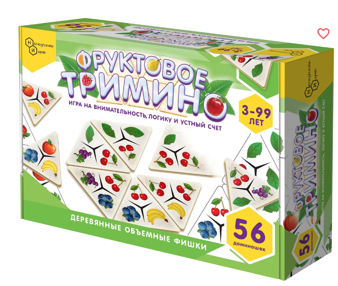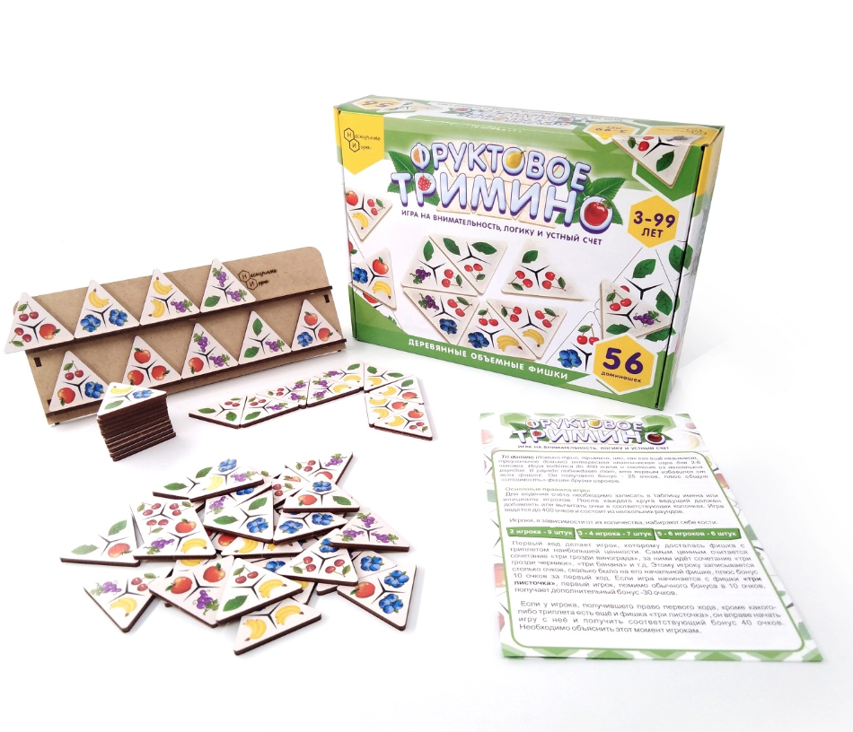 «Фруктовое тримино» – это не просто настольная игра, а настоящее приключение в мир весёлых фруктовых комбинаций и увлекательных игровых моментов! Соберите всю семью за этой яркой и познавательной игрой!