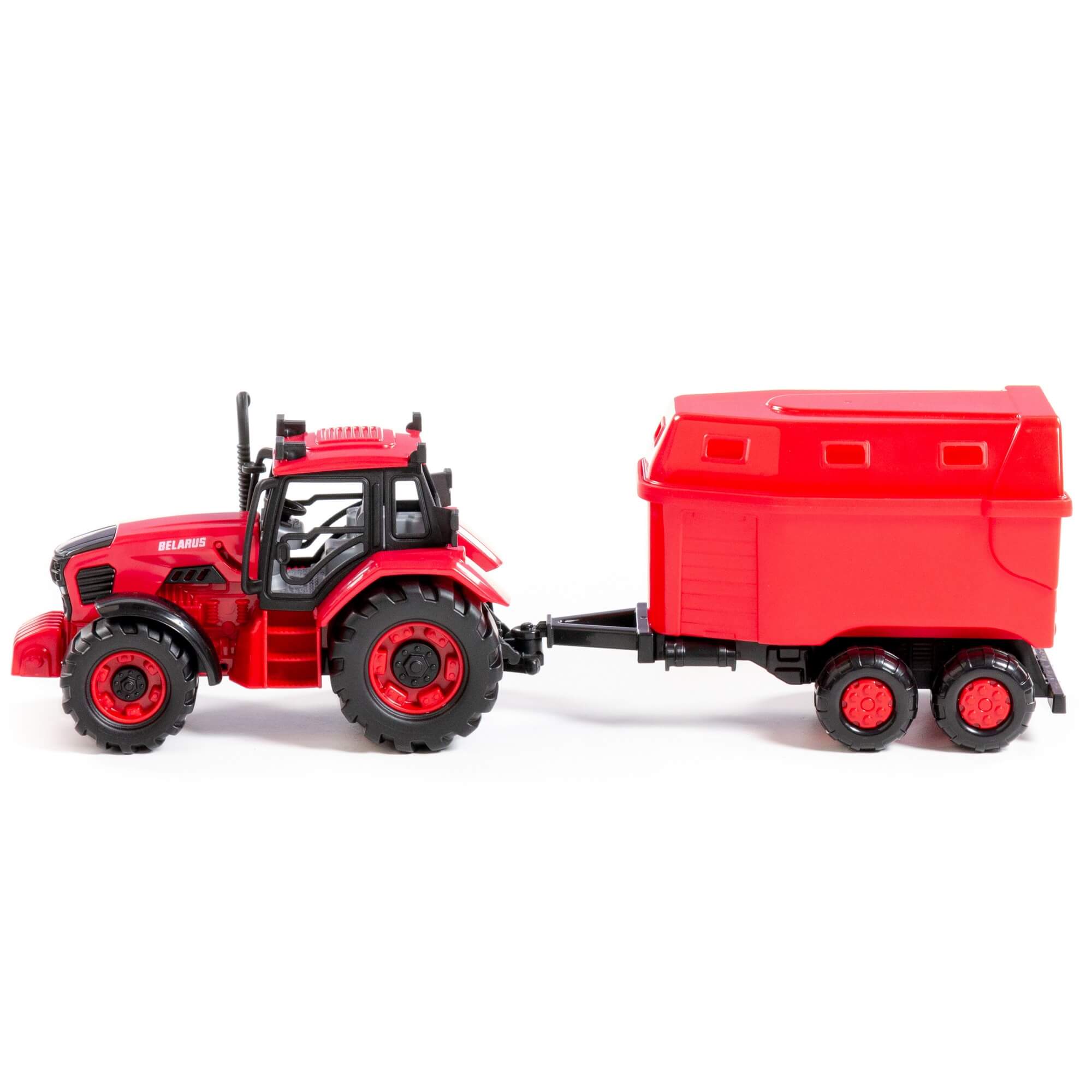 Капот трактора может быть зафиксирован в открытом положении для «ремонта» во время игры. Трактор оснащен инерционным механизмом, который повышает проходимость на разных поверхностях. Данная модель оснащена прицепом для перевозки животных, что позволит разнообразить сценарии детских игр. Взаимодействовать с игрушкой увлекательно как дома, так и на свежем воздухе. Продается маленький аналог большой спецтехники в красочной коробке.