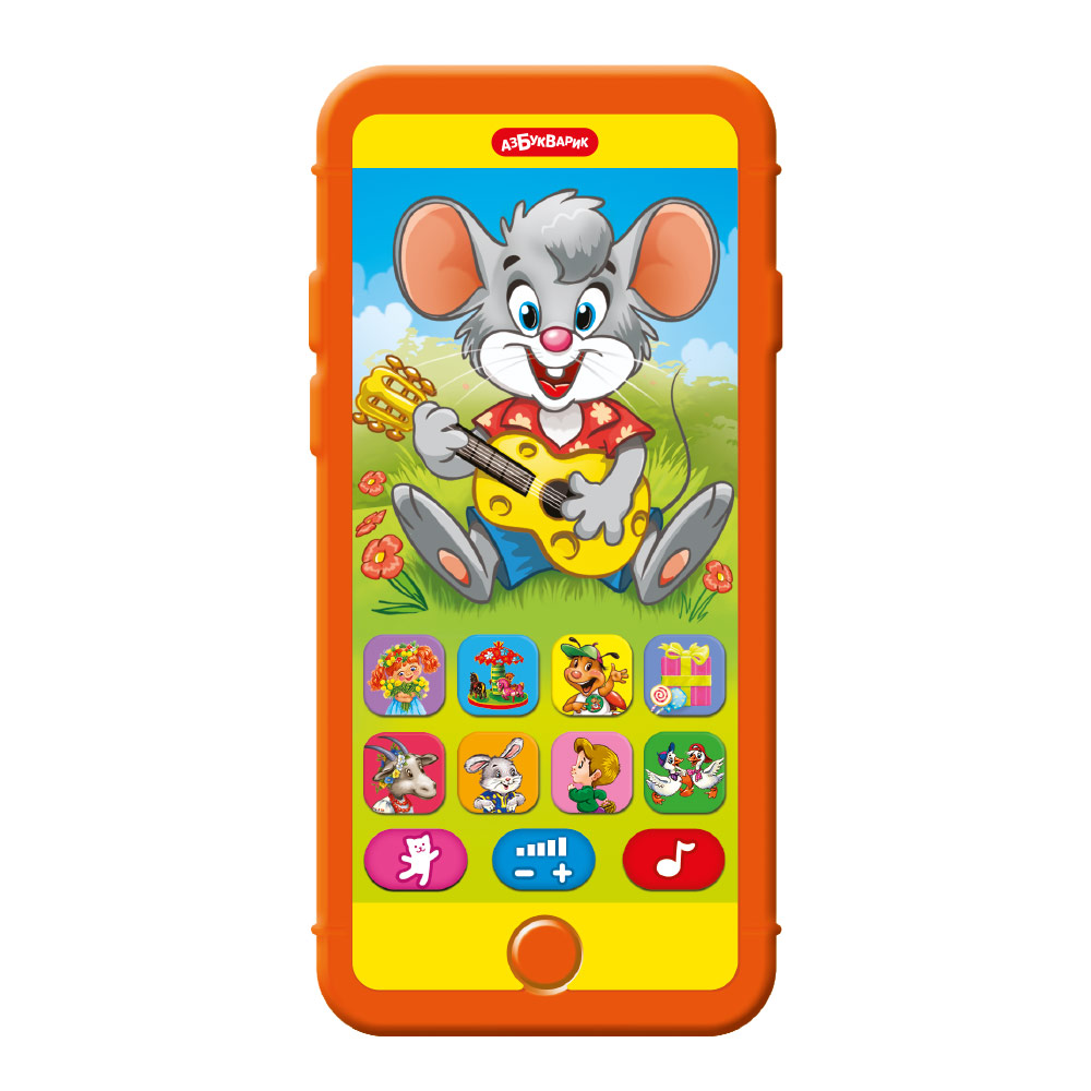При нажатии на кнопочки этого плеера-телефончика малыш послушает известные песенки и потешки («Какой чудесный день!», «Лето», «Стало солнышко теплей», «Весёлая карусель», «Детская площадка», «Добрый жук», «Доброта», «Что такое праздник», «Сладкоежки», «Го-го-го, коза!», «Как у наших у ворот», «Зайчик серенький сидит», «Заинька, попляши!», «Два весёлых гуся», «Тень-тень, потетень» и др.), а также танцевальные мелодии и забавные звуки.