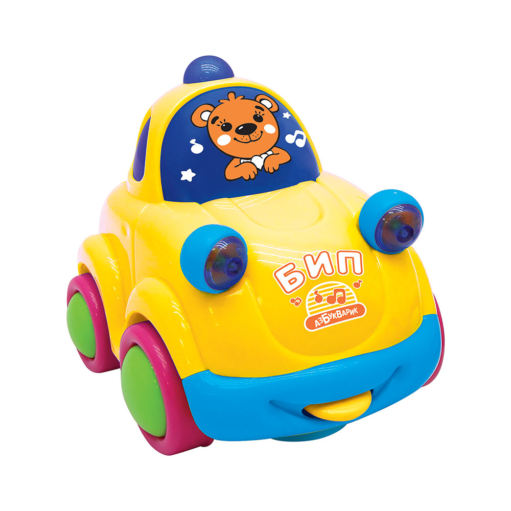 Слушай веселую песенку, забавные мелодии и звуки транспорта. У машинки есть подвижные детали (фары и др.) и разноцветные огоньки, которые мигают под музыку. Отличный выбор для маленьких непосед!