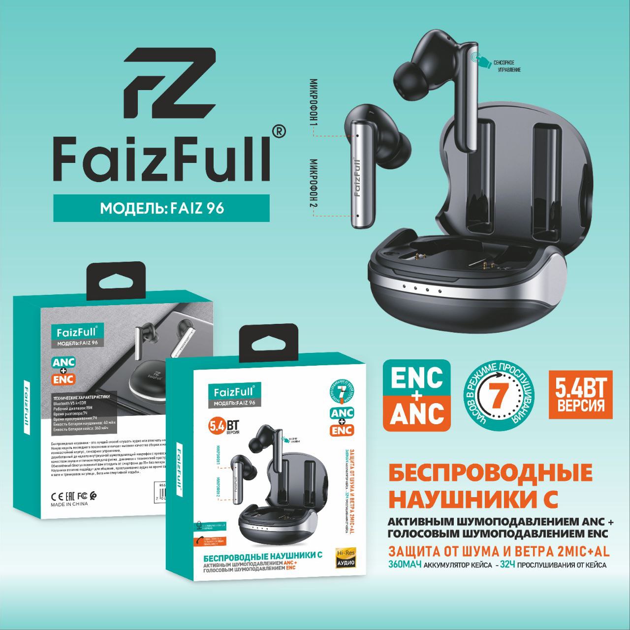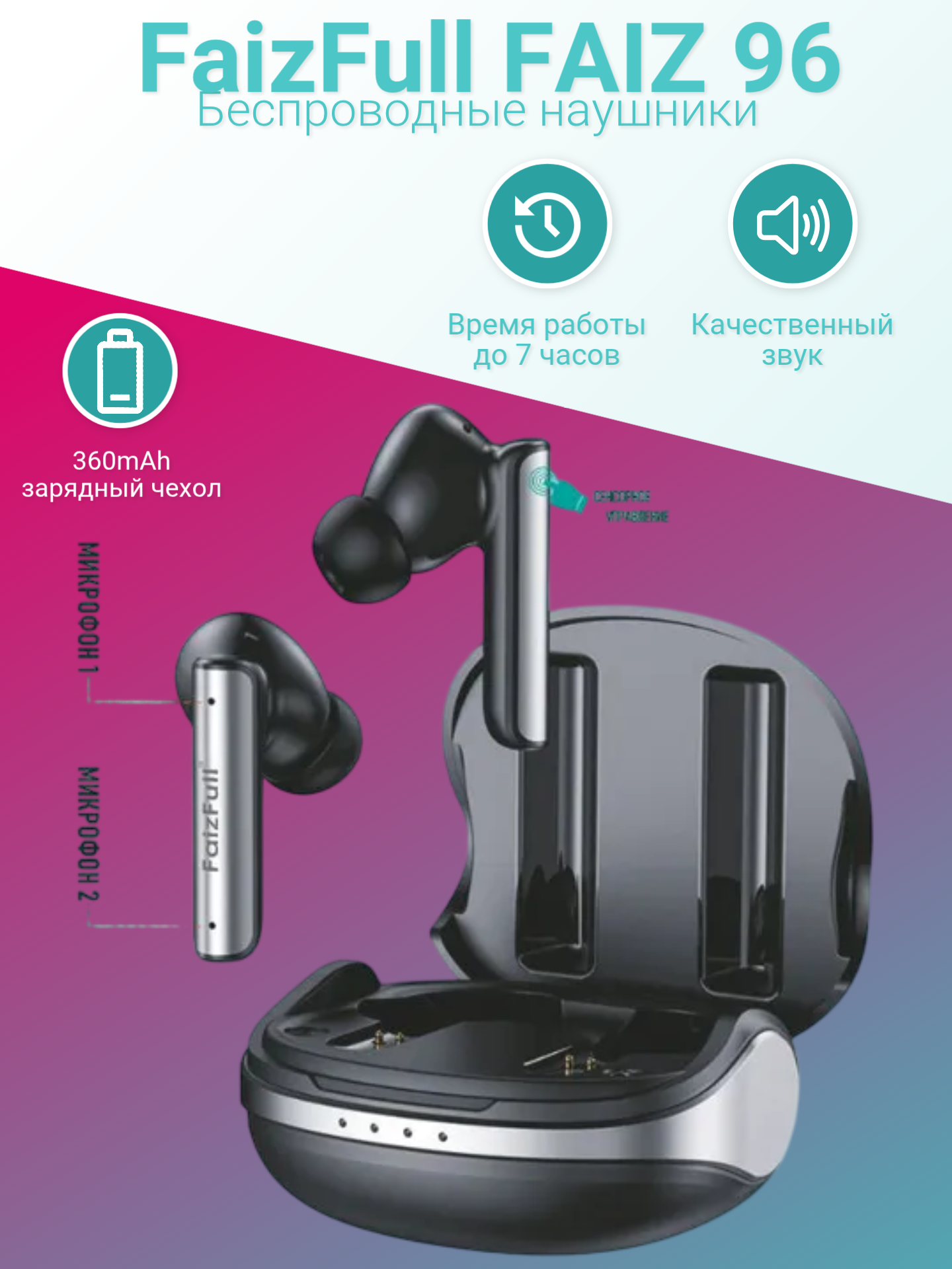 Наушники беспроводные с переводчиком FaizFull Late AIR X черный 2 240 руб. / шт.