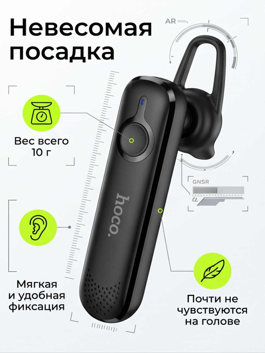 Главная особенность Hoco E63 — её невероятная легкость. Вес устройства составляет всего 6 грамм, что делает его практически неощутимым на ухе даже при длительном ношении. Эргономичный корпус из качественного пластика и мягкий амбушюр обеспечивают надежную фиксацию, позволяя вам забыть о дискомфорте.