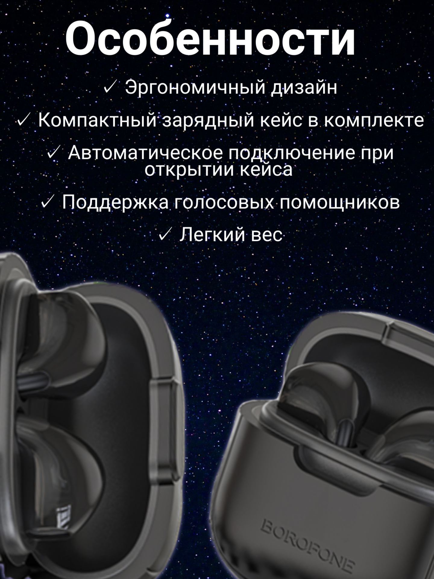 Borofone BW29 — практичное решение для тех, кто ценит качество звука, удобство использования и длительное время автономной работы. Наушники подойдут как для прослушивания музыки и подкастов, так и для ведения телефонных переговоров в повседневной жизни.