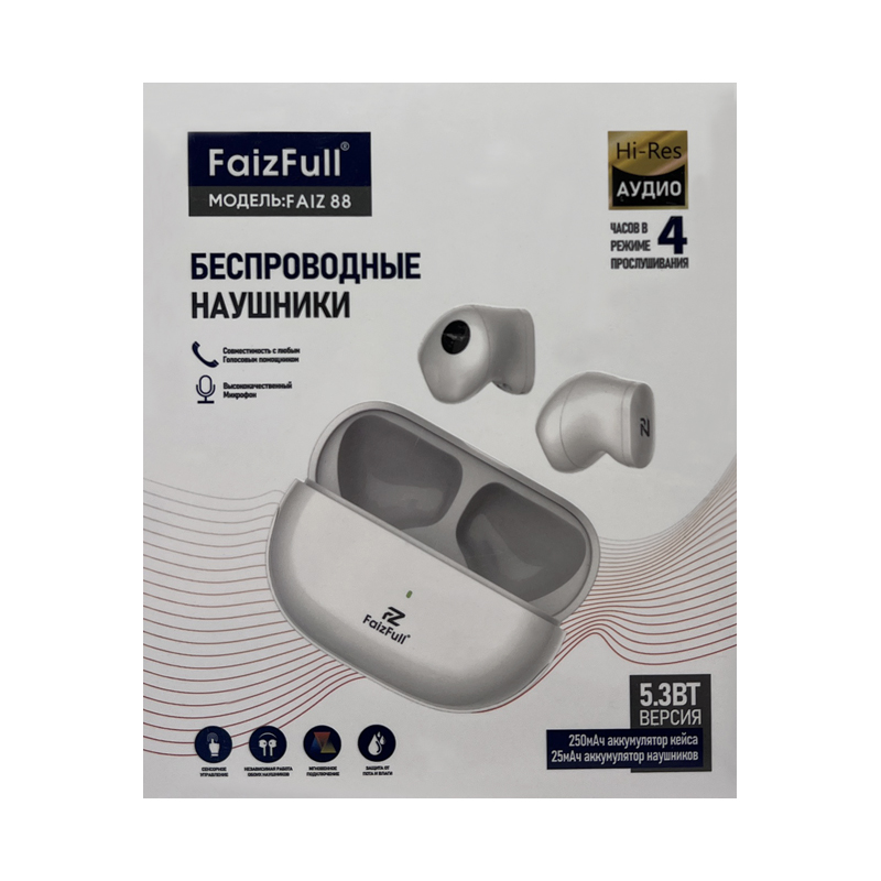 Беспроводные наушники FaizFull FAIZ 88 — это сочетание премиального дизайна, инновационных технологий и безупречного звука. Модель года разработана для тех, кто ценит комфорт, надежность и высокое качество аудио в повседневной жизни.