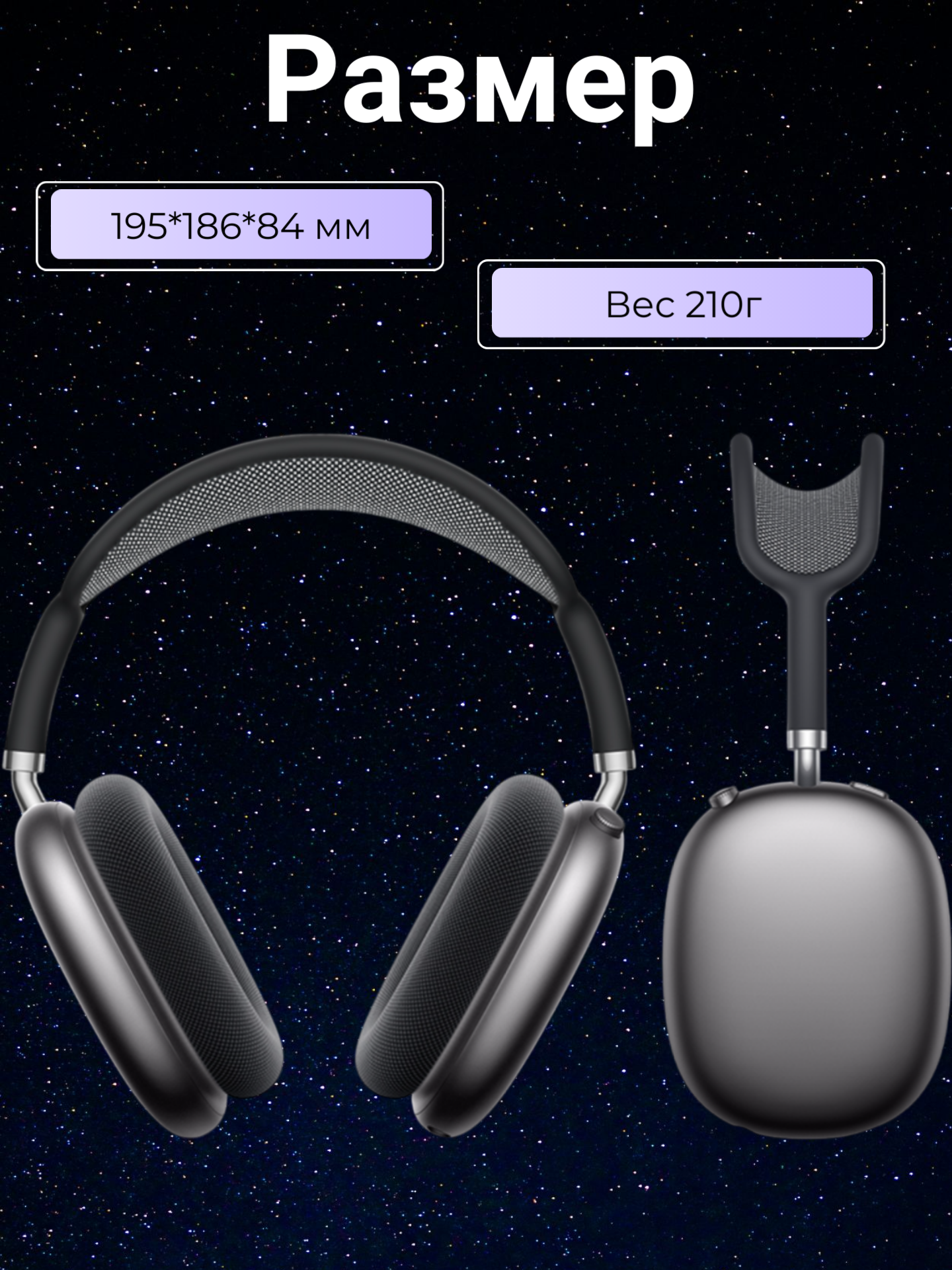 Корпус наушников изготовлен из прочного ABS-пластика, а размеры 195 × 186 × 84 мм и вес 210 грамм обеспечивают комфортную посадку и удобство при длительном использовании. Особого внимания заслуживает система активного шумоподавления ANC, которая эффективно блокирует внешние шумы, позволяя полностью погрузиться в мир музыки.