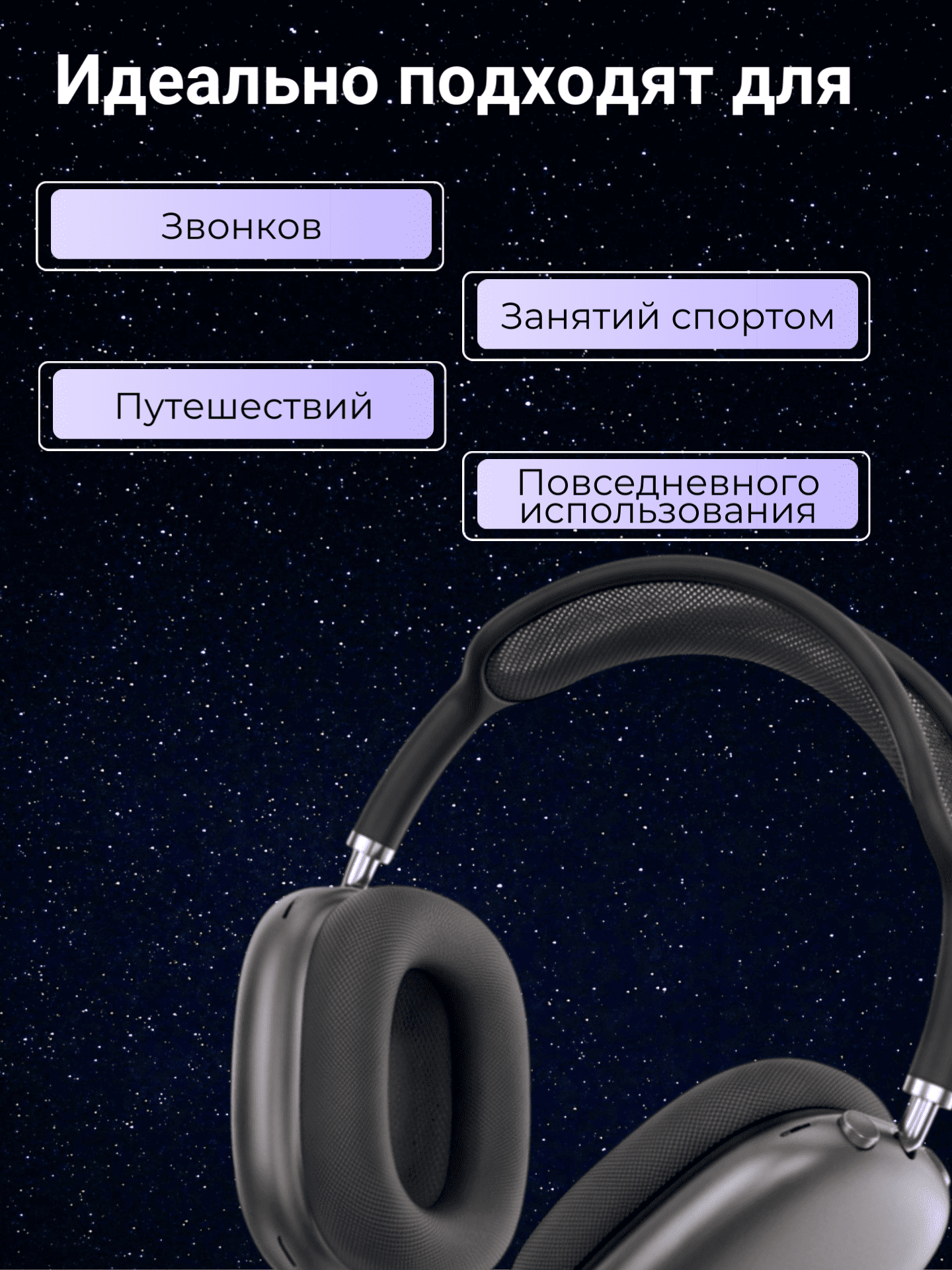 Складная конструкция делает наушники удобными для хранения и переноски, а надежные материалы корпуса повышают долговечность. Модель подойдет тем, кто ищет беспроводные наушники с шумоподавлением, удобные накладные bluetooth-наушники, гарнитуру для телефона и универсальные наушники для дома, офиса, поездок и прогулок.