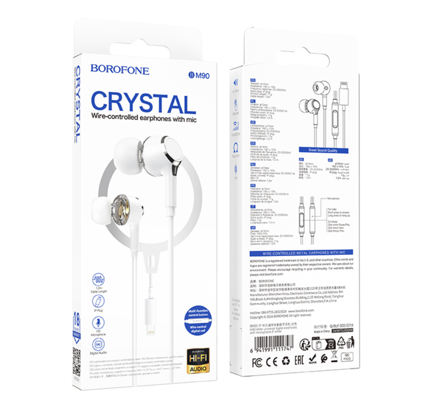 Проводные наушники BM90 от Borofone в стильном белом исполнении — это современное решение для пользователей устройств. Модель разработана специально для смартфонов iPhone 7 и более новых моделей, оснащённых разъёмом Lightning.