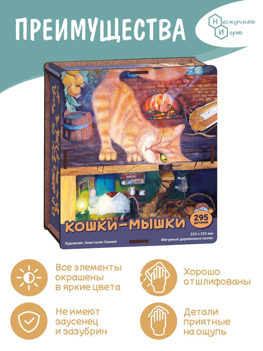 Фигурный деревянный пазл Нескучные игры Синие коты - Зима в Котофеевке Новый год 650 руб. / шт.