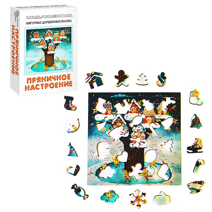 Фигурный деревянный пазл Нескучные игры Синие коты - Зима в Котофеевке Новый год 650 руб. / шт.