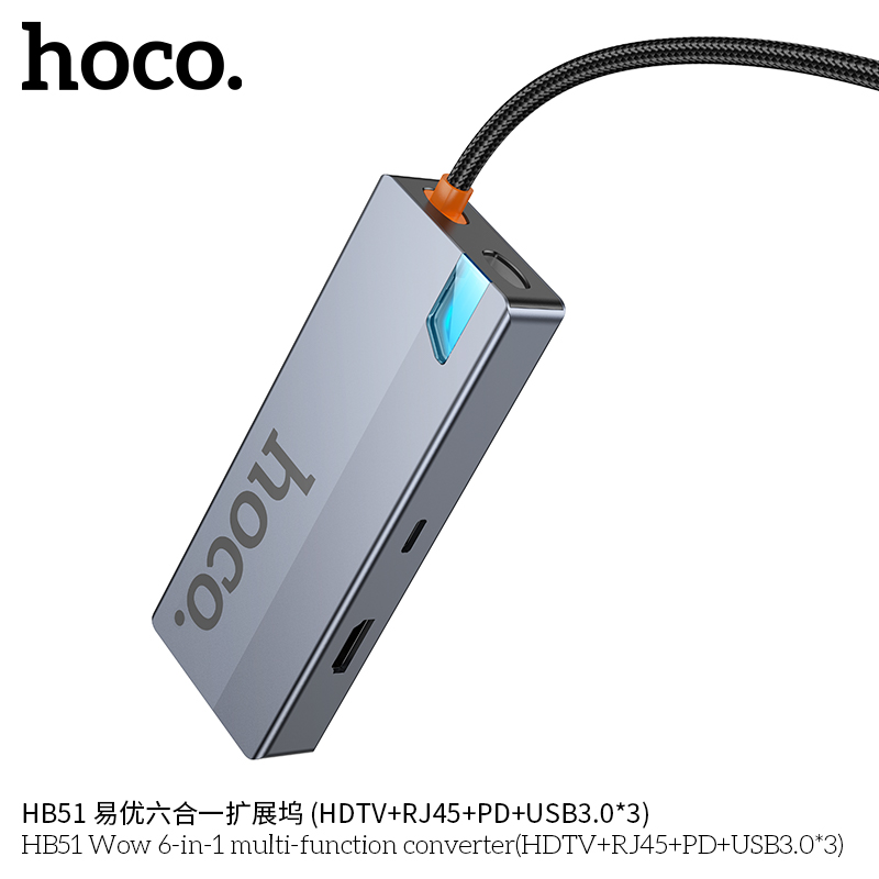 USB‑хаб Hoco Type‑C 6 в 1 — компактное и функциональное устройство, объединяющее шесть интерфейсов в одном корпусе. Он позволяет существенно расширить возможности ноутбука или компьютера с разъёмом Type‑C, избавив от нехватки портов и необходимости использовать несколько отдельных адаптеров.