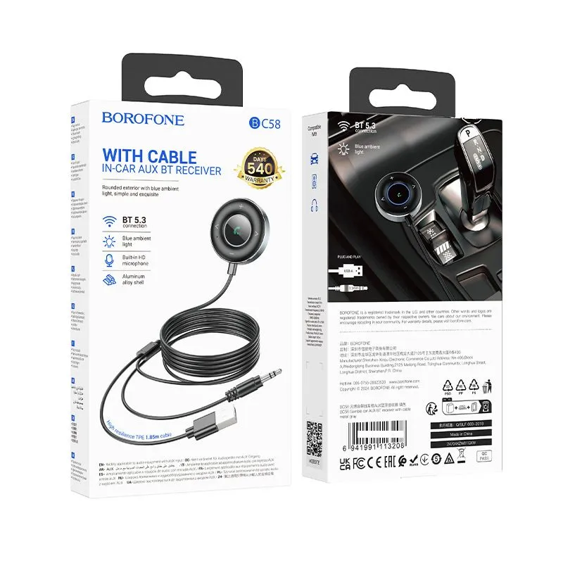Он позволяет подключать смартфоны, планшеты и другие устройства с поддержкой Bluetooth к магнитоле имеющей выход AUX, чтобы передавать музыку и звук без использования проводов. Особенностью данного адаптера является возможность управления громкостью, ответа на звонки, переключения треков с помощью специально выведенной панели, которая крепится на двухсторонний скотч (не идёт в комплекте) или просто кладётся на свободное удобное место. Длина кабелей составляет 1,5 м.