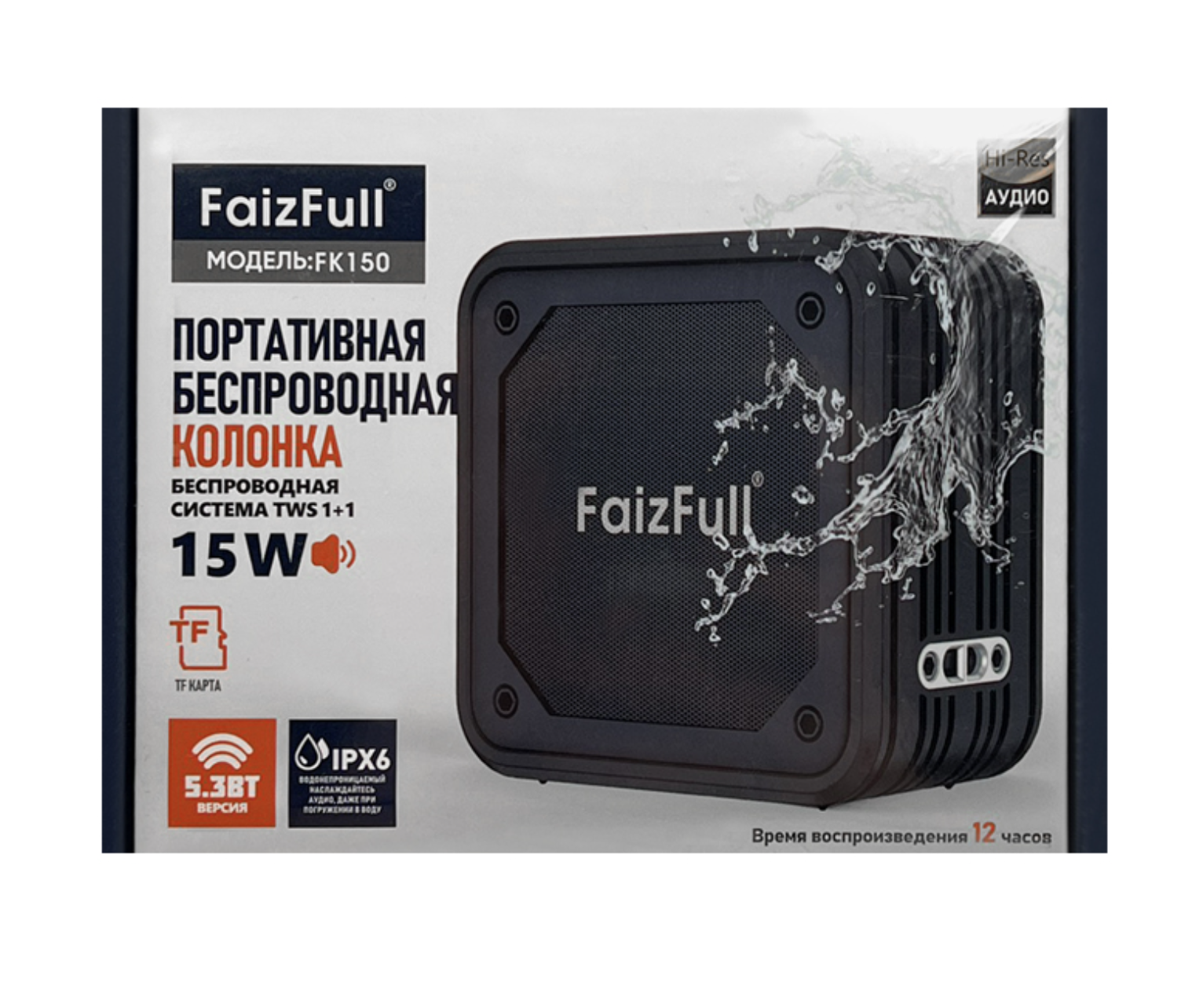 Беспроводная колонка FaizFull FK150 представляет собой современное портативное аудиоустройство, выполненное в стильном синем цвете. Корпус устройства изготовлен из высококачественных материалов: силикона, металла и прочного ABS-пластика, что обеспечивает не только привлекательный внешний вид, но и надёжную защиту внутренних компонентов.