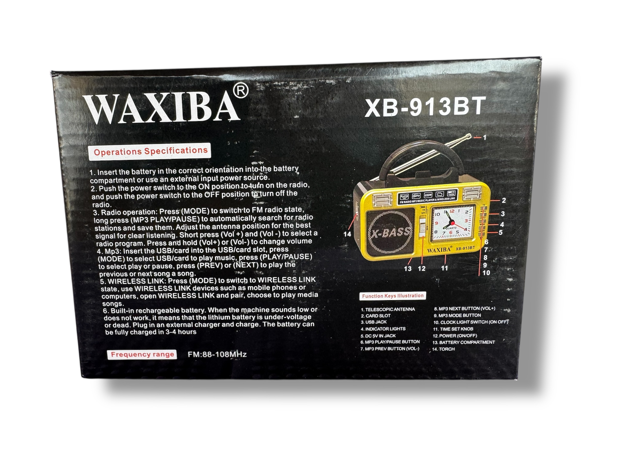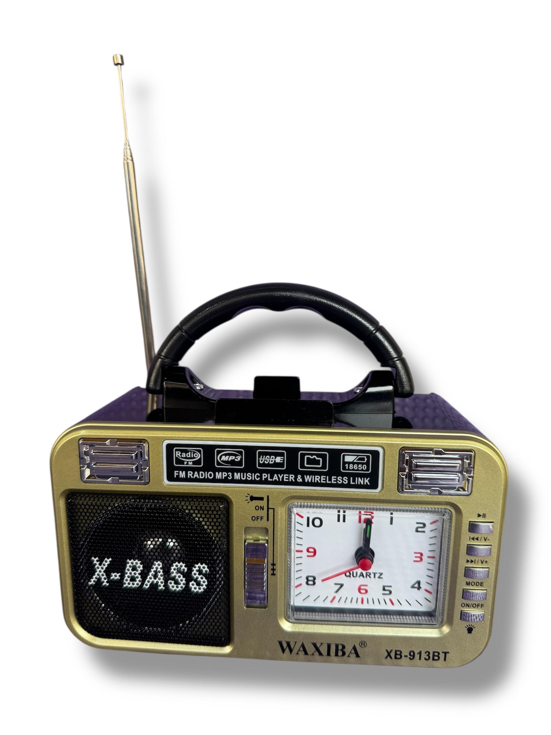 Радиоприемник портативный с часами XB-913 BT — это сочетание функциональности, стиля и удобства, которое подарит вам удовольствие от прослушивания музыки и радио в любом месте!