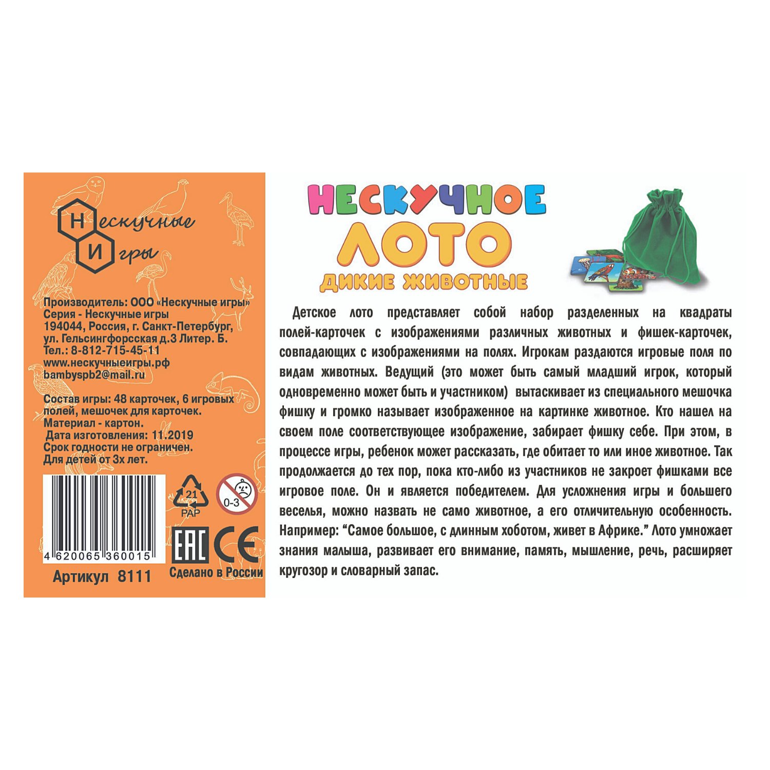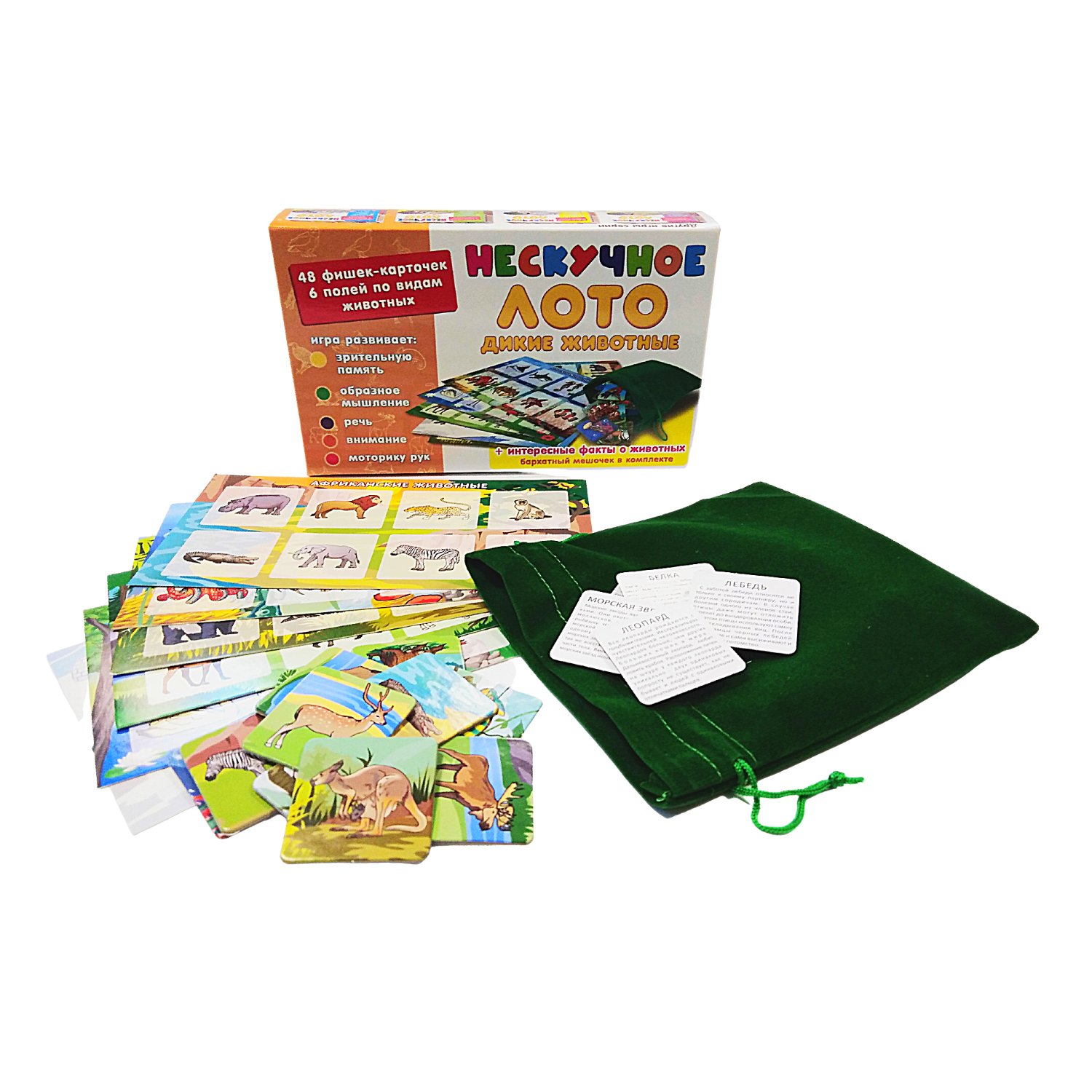 Игрокам раздаются игровые поля по видам животных. Ведущий (это может быть самый младший игрок, который одновременно может быть и участником), вытаскивает из специального мешочка фишку и громко называет изображенное на картинке животное. Кто нашел на своем поле соответствующее изображение, забирает фишку себе. При этом, в процессе игры, ребенок может рассказать, где обитает то или иное животное. Так продолжается до тех пор, пока кто-либо из участников не закроет фишками все игровое поле. Он и является победителем. Для усложнения игры и большего веселья, можно назвать не само животное, а его отличительную особенность. Например: “Самое большое, с длинным хоботом, живет в Африке.” Лото умножает знания малыша, развивает его внимание, память, мышление, речь, расширяет кругозор и словарный запас.