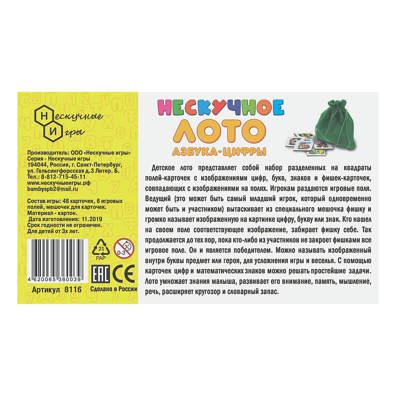 Игрокам раздаются игровые поля. Ведущий (это может быть самый младший игрок, который одновременно может быть и участником), вытаскивает из специального мешочка фишку и громко называет изображенную на картинке цифру, букву или знак. Кто нашел на своем поле соответствующее изображение, забирает фишку себе. Так продолжается до тех пор, пока кто-либо из участников не закроет фишками все игровое поле. Он и является победителем. Можно называть изображенный внутри буквы предмет или героя, для усложнения игры и веселья. С помощью карточек цифр и математических знаков можно решать простейшие задачи. Лото умножает знания малыша, развивает его внимание, память, мышление, речь, расширяет кругозор и словарный запас.