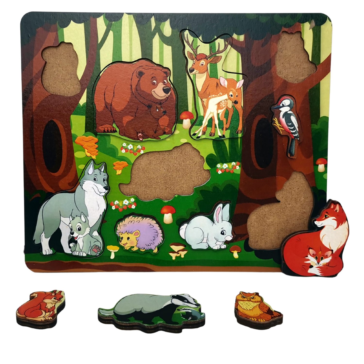Деревянная доска "Кто живет в лесу?" - это игровая панель для развития мелкой моторики, логики, внимания, усидчивости и воображения вашего малыша.