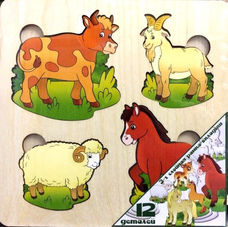 В наборе 12 вкладышей домашних животных, относящихся к 4-м семьям.