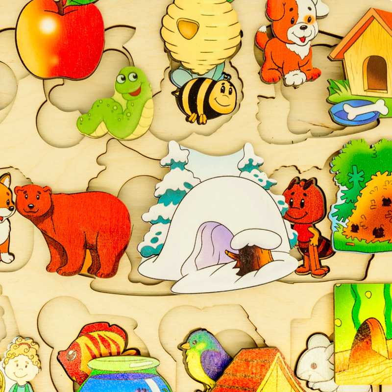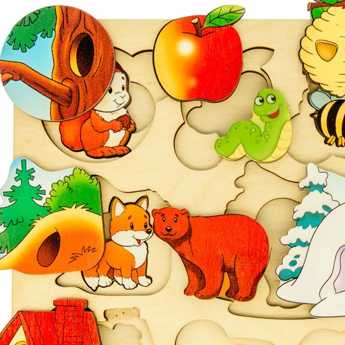 Доска состоит из 22-х деталей с изображениями животных и их мест обитания.