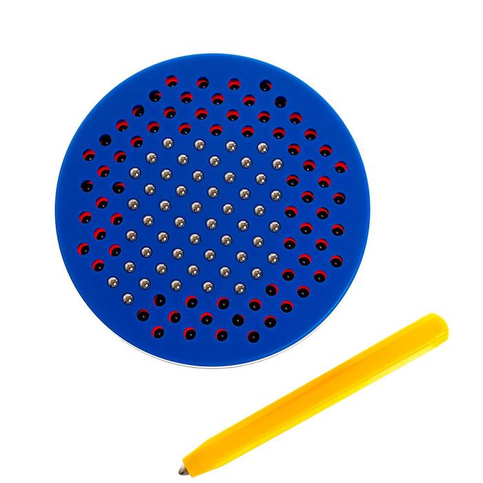 В комплекте к планшету ребёнок найдёт пластиковую доску с множеством ячеек, стилус с магнитным наконечником и металлические шарики. С помощью них ребёнок будет рисовать геометрические фигуры, буквы, цифры и многое другое.