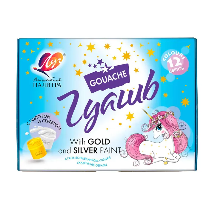 Наличие баночек краски с золотым и серебряным цветом гуаши