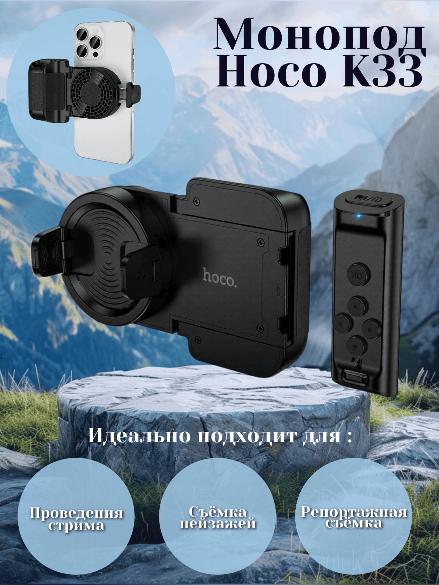 Монопод-штатив для телефона с пультом Hoco K15, черный* 1 033.60 руб. / шт.