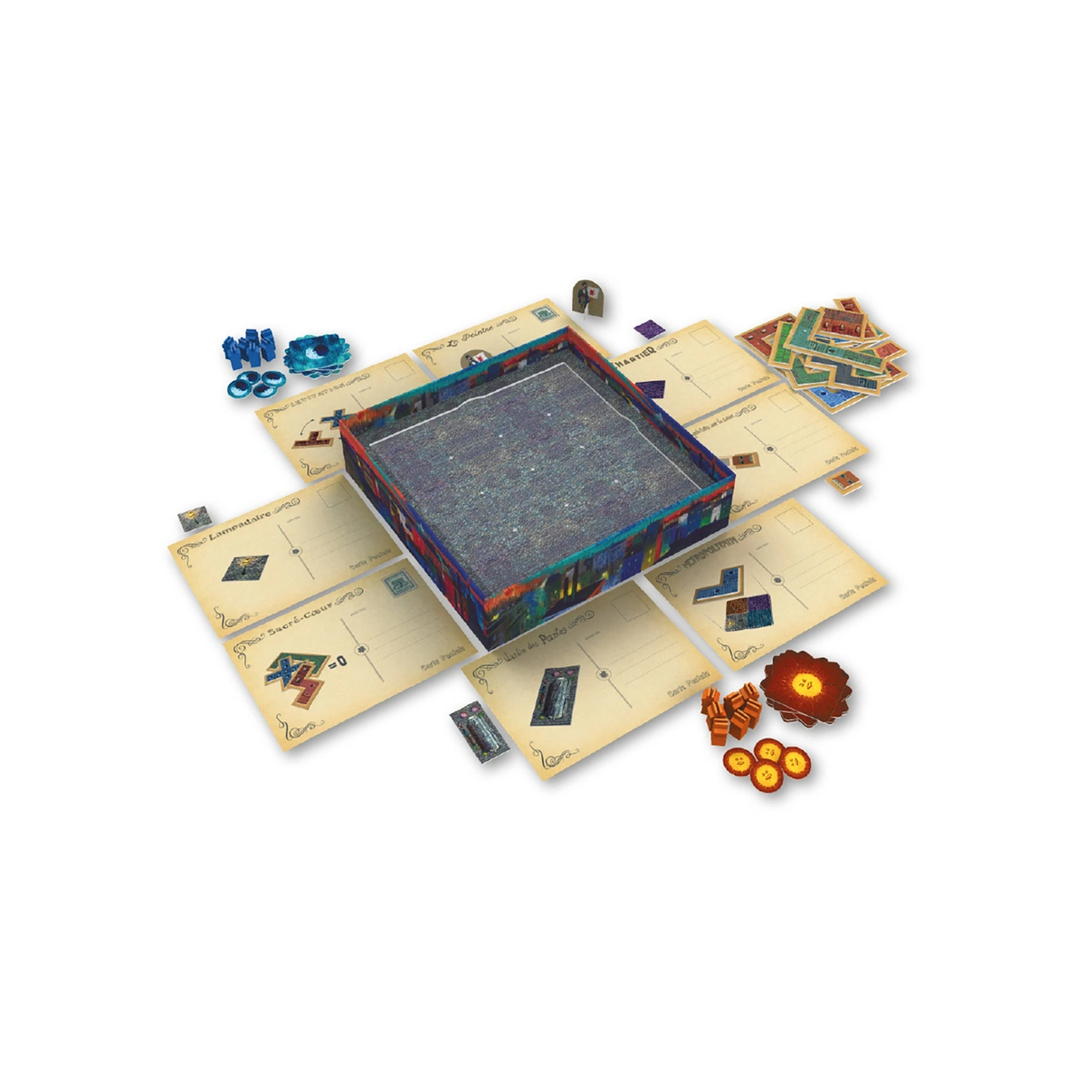 Настольная игра «Париж: Город огней» – это дуэльная настольная игра, в которой игроки застраивают городской квартал, пытаясь получить как можно больше от доступных им инструментов. Партия разворачивается в два этапа.
