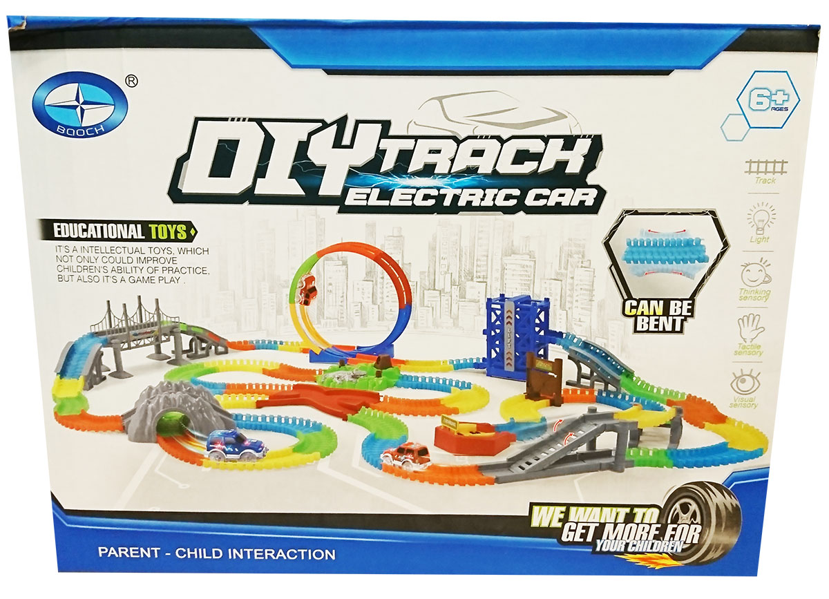 Представляем вашему вниманию инновационную игрушку Светящийся гибки трек с лифтом 132 детали. Трек и машинка светится и изгибается. С ней играть одно удовольствие. Трасса вращается на 360 градусов.
