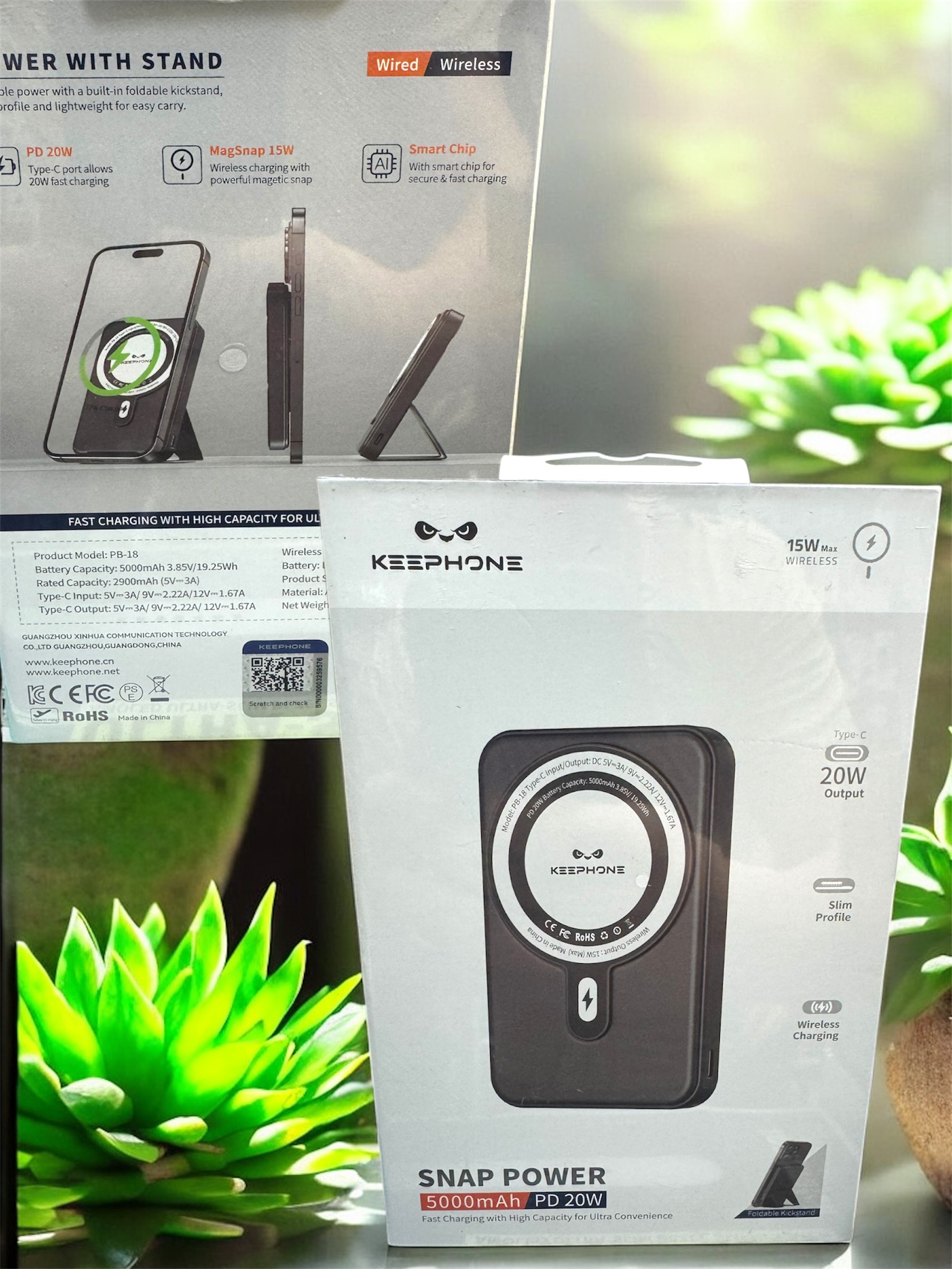 KEEPHONE SNAP 5000 — это эргономичный аксессуар, который сочетает функциональность, портативность и современные технологии зарядки в лаконичном дизайне.