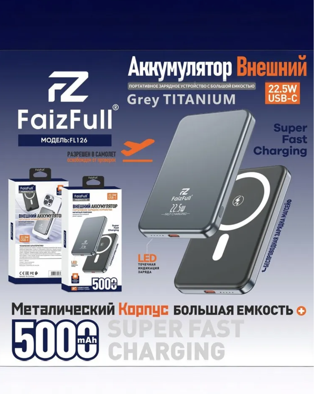Магнитный аккумулятор 5000 mAh 15W Magnetic Hoco Q46 серый 2 622 руб. / шт.