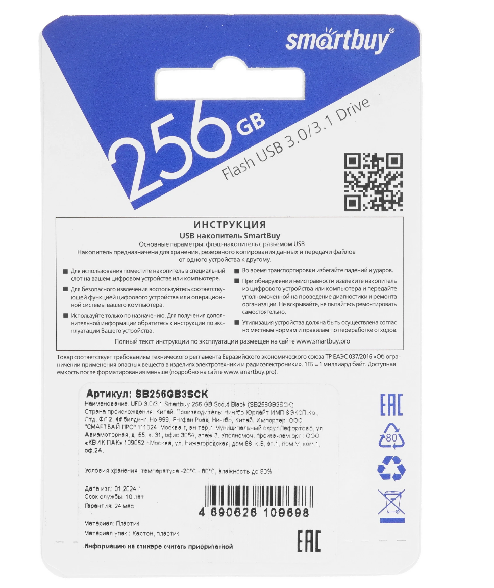 Флешка полностью совместима с большинством современных компьютеров, ноутбуков и мультимедийных устройств, работающих с USB-портами. Это делает её универсальным решением как для работы в офисе, так и для личного использования. Надёжная конструкция и высокая скорость работы делают Smartbuy Scout отличным выбором для тех, кто ценит качество, функциональность и стиль в одном устройстве.