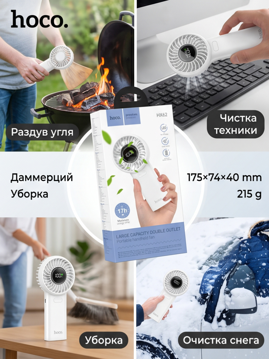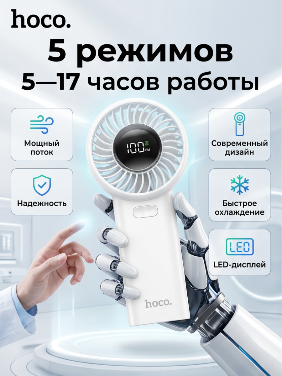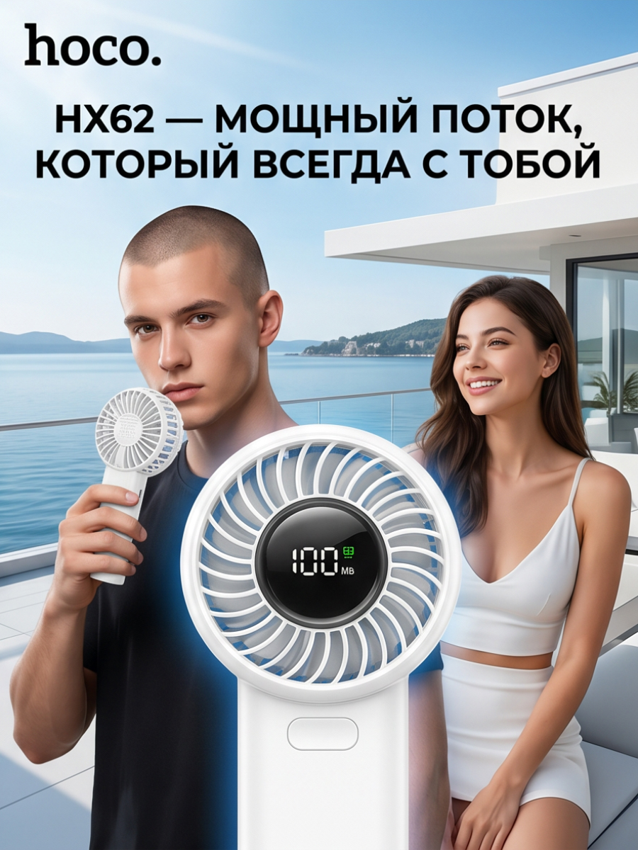 Ручной вентилятор hoco HX62 — компактный и мощный портативный вентилятор для дома, офиса, прогулок, поездок, спорта, отдыха и использования в дороге. Удобно лежит в руке, легко помещается в сумку или рюкзак и помогает быстро освежиться в жаркую погоду. Современный дизайн и эргономичная форма делают его отличным выбором для ежедневного использования.
