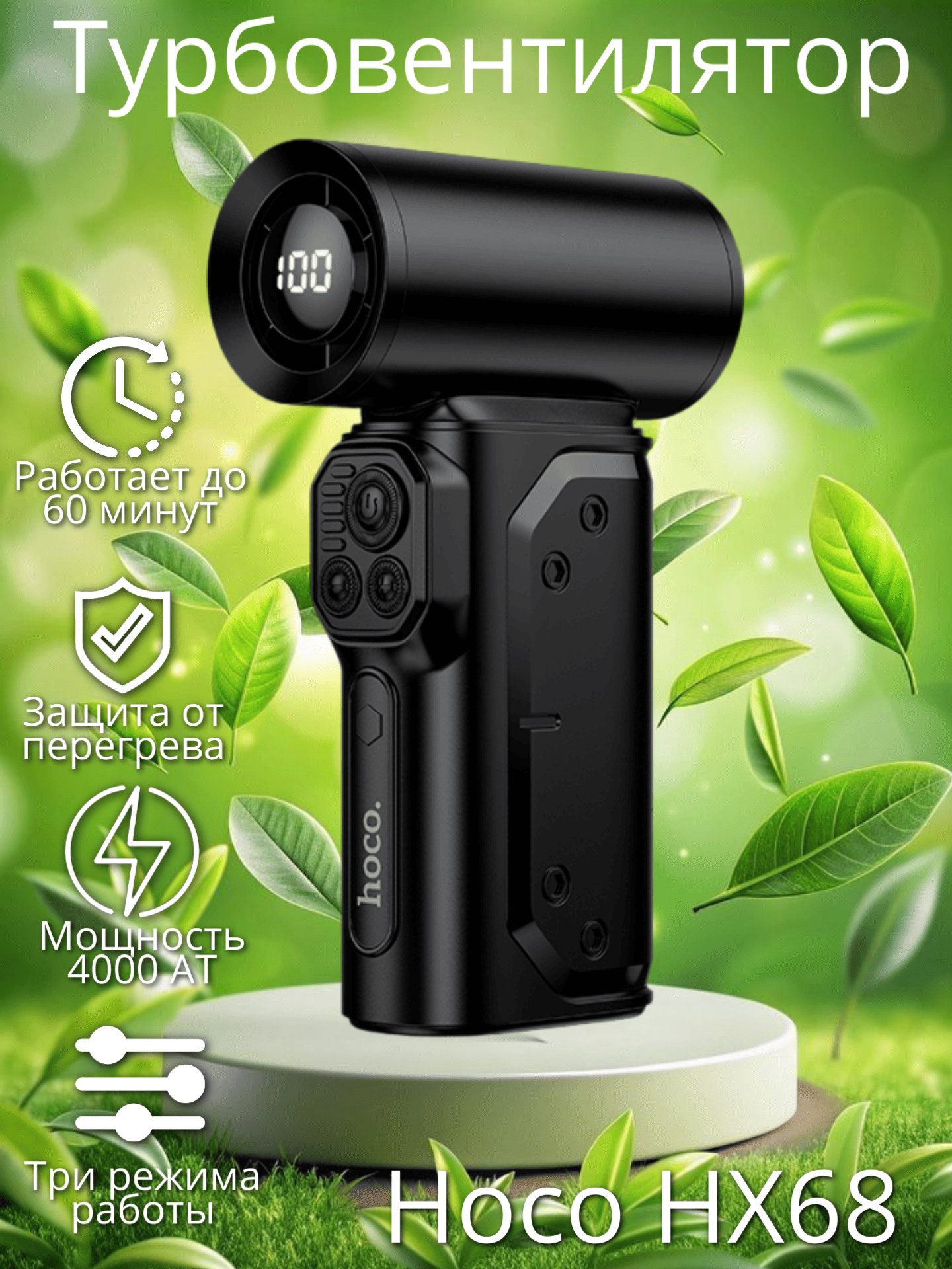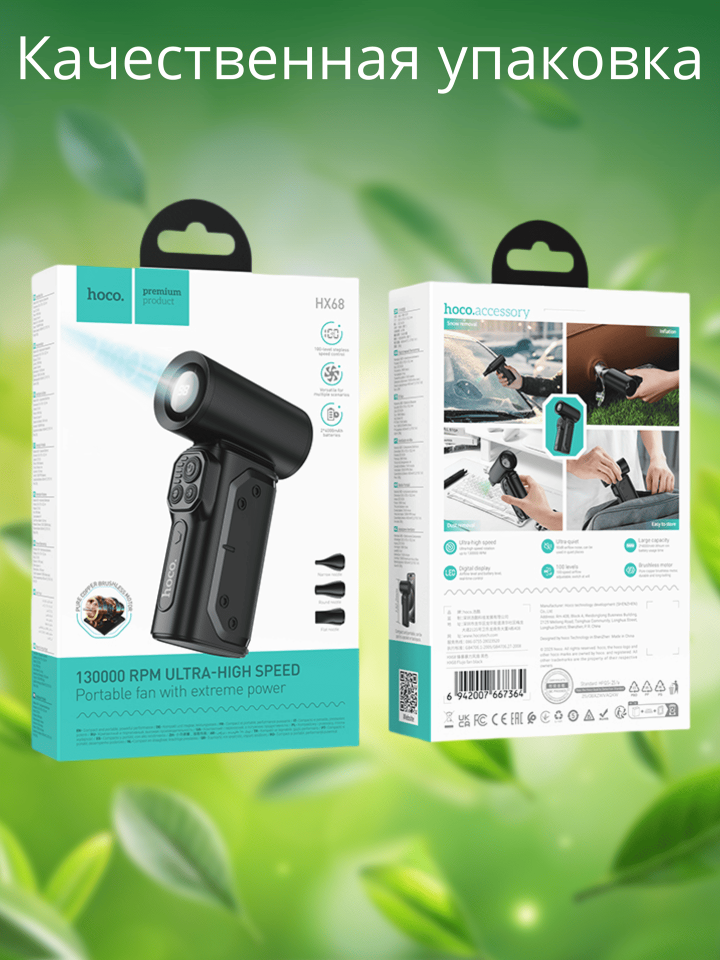 Hoco HX68 сочетает передовые технологии с удобством использования — это практичный выбор для тех, кто ценит мобильность и эффективность. Мощный, автономный и многофункциональный, он станет вашим надёжным помощником в жаркие дни, обеспечивая комфортный микроклимат в любой ситуации.